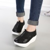 韩版时尚 激光面女鞋 镂空色拼接厚底深口中跟单鞋